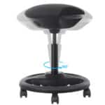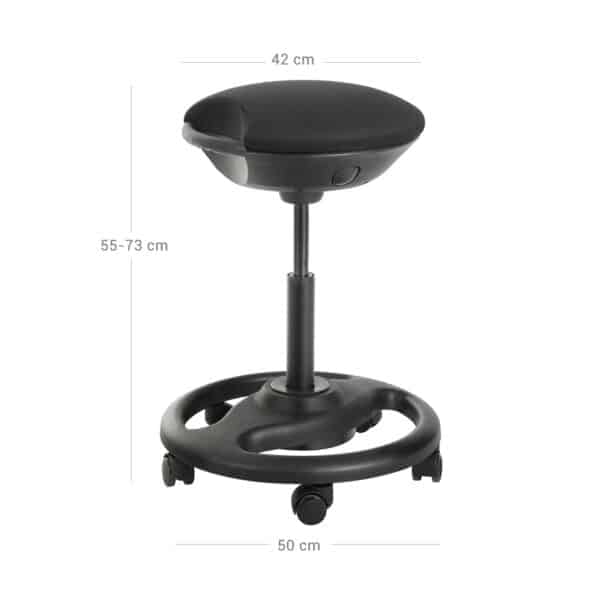 Kietas sėdėjimas liko praeityje: šiuolaikiniuose biuruose dabar yra taburetės ant ratukų, kurios leidžia aktyviai dirbti. Jauskitės patogiai ant Ø 42 cm, gerai paminkštintos šios darbo kėdės sėdynės ir toliau judėkite. Stabilių ratukų dėka kėdę galima pasukti 360°, pakreipti 10° į visas puses ir, žinoma, perkelti per kambarį. Norėdami tai padaryti, atsikelkite ir ištraukite taburetę per biurą naudodami integruotą rankeną.