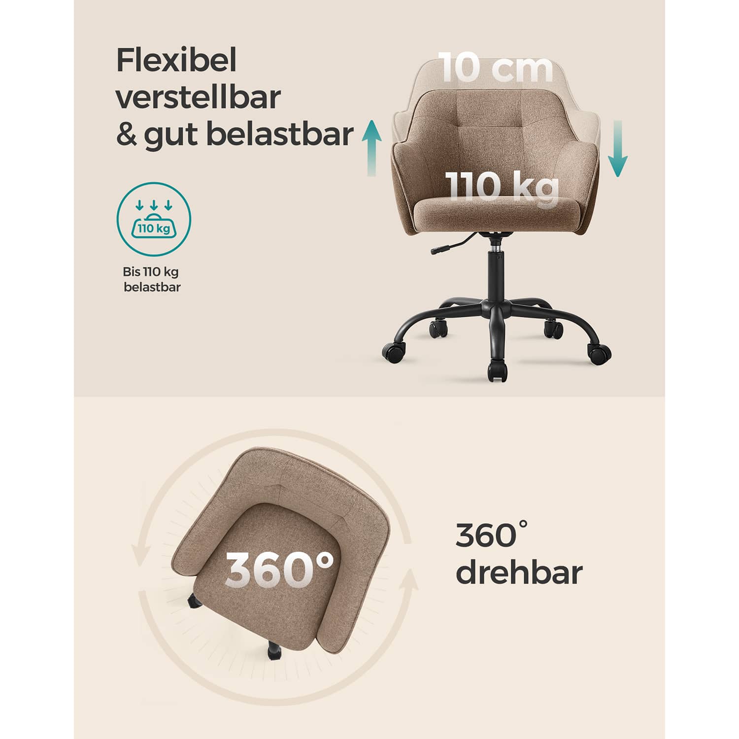 Reguliuojamo aukščio minkšta biuro kėdė, rudos spalvos, yra puikus pasirinkimas tiems, kurie vertina komfortą ir funkcionalumą. Ši kėdė leidžia lengvai pritaikyti sėdėjimo aukštį pagal individualius poreikius, užtikrinant patogią ir ergonomišką darbo aplinką.