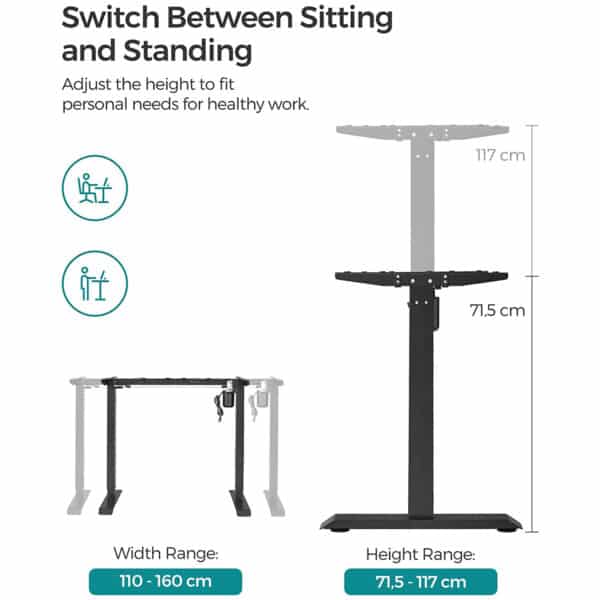 Šis reguliuojamo aukščio stalas su atminties funkcija yra puikus pasirinkimas visiems šeimos nariams – tiek vaikams, tiek suaugusiesiems. Jei nenorite visą laiką sėdėti, šis stalas leidžia dirbti net stovint, o tai atpalaiduoja stuburą ir sudegina daugiau kalorijų. Idealiai tinka tiems, kurie ilgai sėdi prie rašomojo stalo biure ar darbo kambaryje.