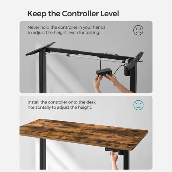 - Nedėkite po stalu daiktų, aukštesnių nei 50 cm, kad nepažeistumėte nuleidimo proceso metu.