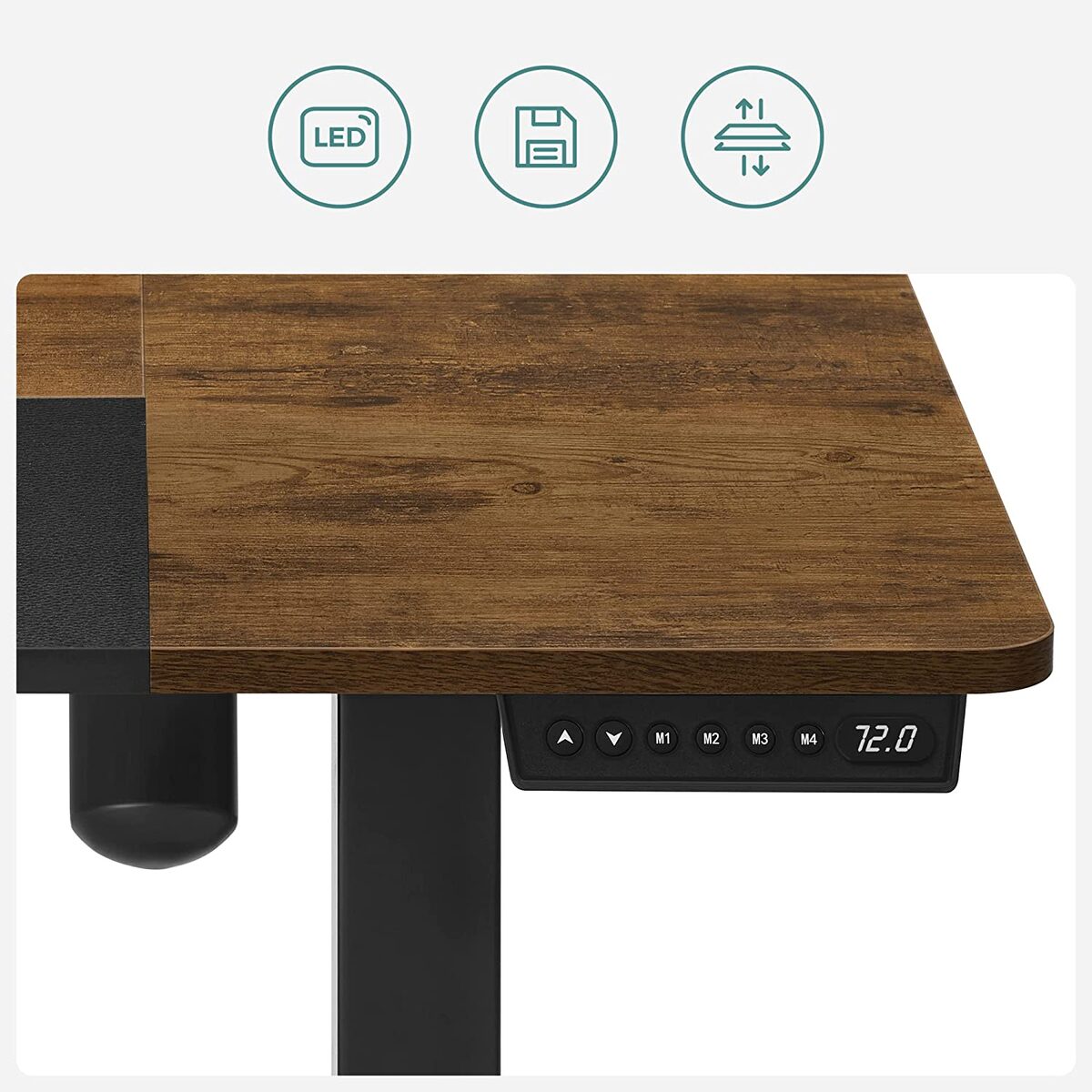 Reguliuojamo aukščio stalas vintažinės rudos ir juodos spalvos suteikia galimybę keisti darbo pozicijas, taip užtikrinant patogumą ir sveikatą. Stalo aukštis gali būti lengvai reguliuojamas, leidžiant dirbti tiek sėdint, tiek stovint.
