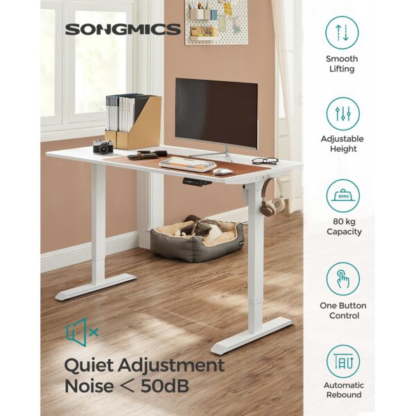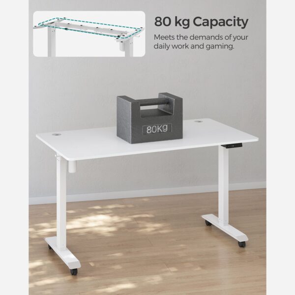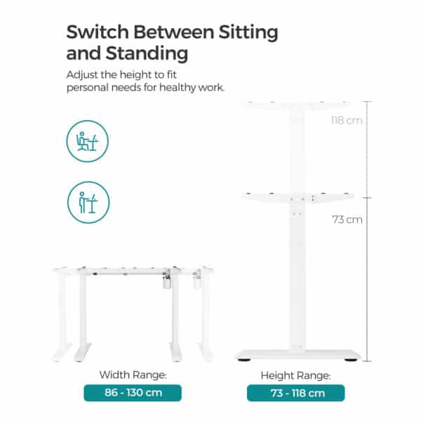 Šis elektrinis stalo rėmas yra reguliuojamo aukščio, todėl tinka visiems šeimos nariams – tiek vaikams, tiek suaugusiesiems. Jei nenorite visą laiką sėdėti, šis stalas leidžia dirbti net stovint, o tai atpalaiduoja stuburą ir sudegina daugiau kalorijų. Idealiai tinka visiems, kuriems tenka ilgai sėdėti prie rašomojo stalo biure ar darbo kambaryje.