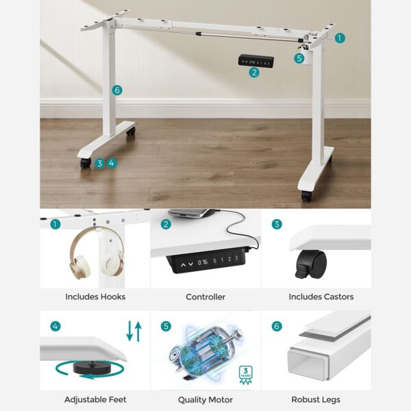 Kiti šio elektrinio stalo rėmo privalumai: