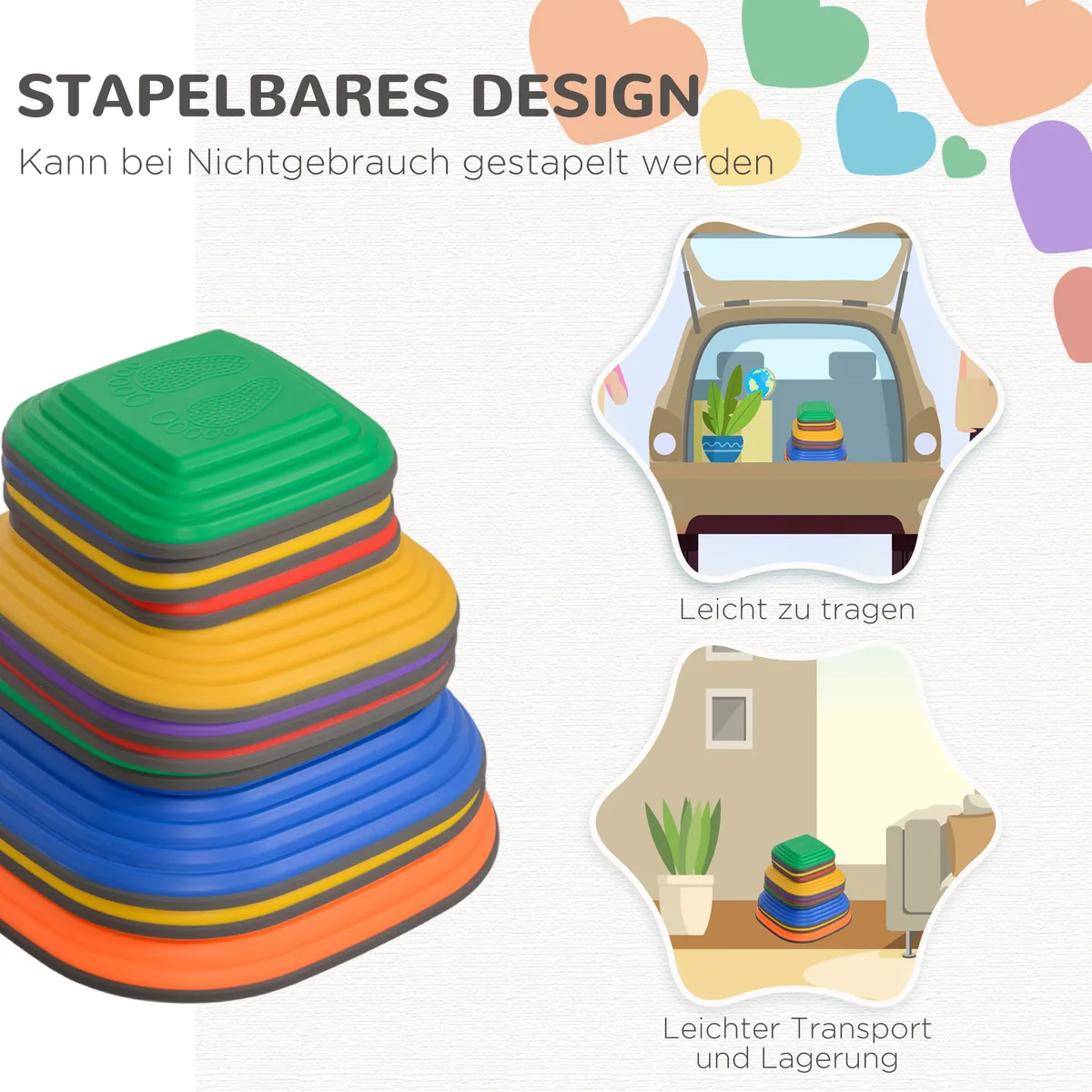 - ✔ Spalvingas balansuojančių akmenų dizainas gerina sensorinę koordinaciją