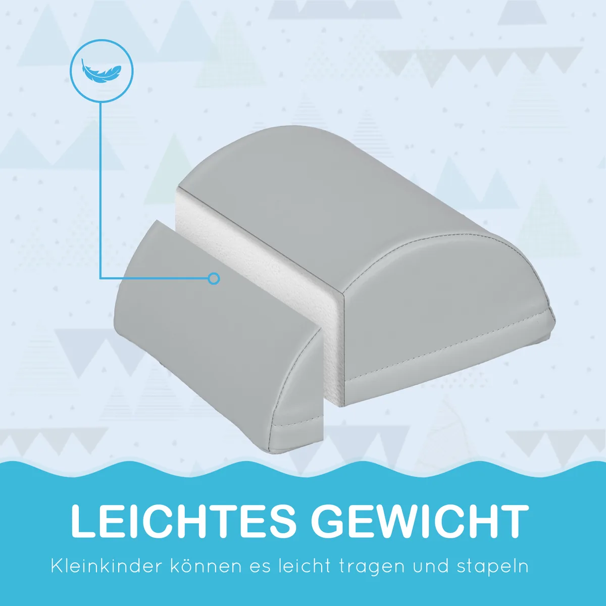 - ✔ Minkštą minkštą statybinių blokelių rinkinį sudaro du puscilindrai, du maži trikampiai, didelis trikampis, mažas puscilindras, du stačiakampiai ir trys kubeliai.