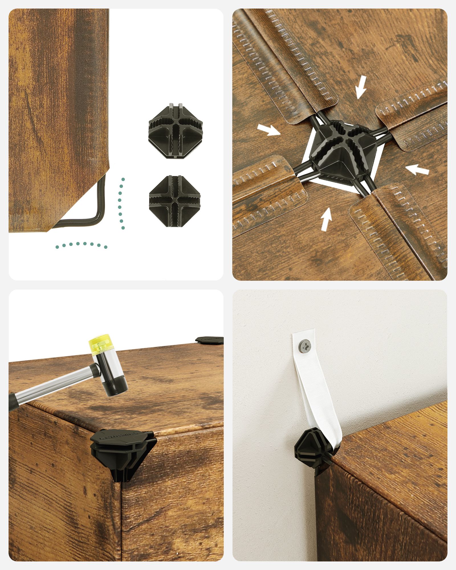 Pagamintos iš aukštos kokybės PP plastiko, su metaliniu rėmu ir ABS plastiku, šios dėžės yra tvirtos ir ilgaamžės. Vieno kubo dydis yra 30 x 30 x 30 cm, o visas rinkinys gali būti sukonstruotas į 15 arba 16 kubelių struktūrą, atitinkamai 153 x 31 x 153 cm arba 123 x 31 x 123 cm dydžio.