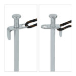 - Unikali galvos forma: Speciali galvos forma su kabliu ir skyle leidžia ypač tvirtai pririšti virves ir karabinus, užtikrinant papildomą stabilumą.