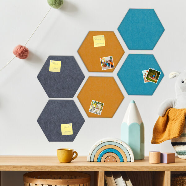 Pasirinkite šį šešiakampių skelbimų lentų rinkinį ir suteikite savo erdvei naują gyvenimą, derindami funkcionalumą su stilingu dizainu.