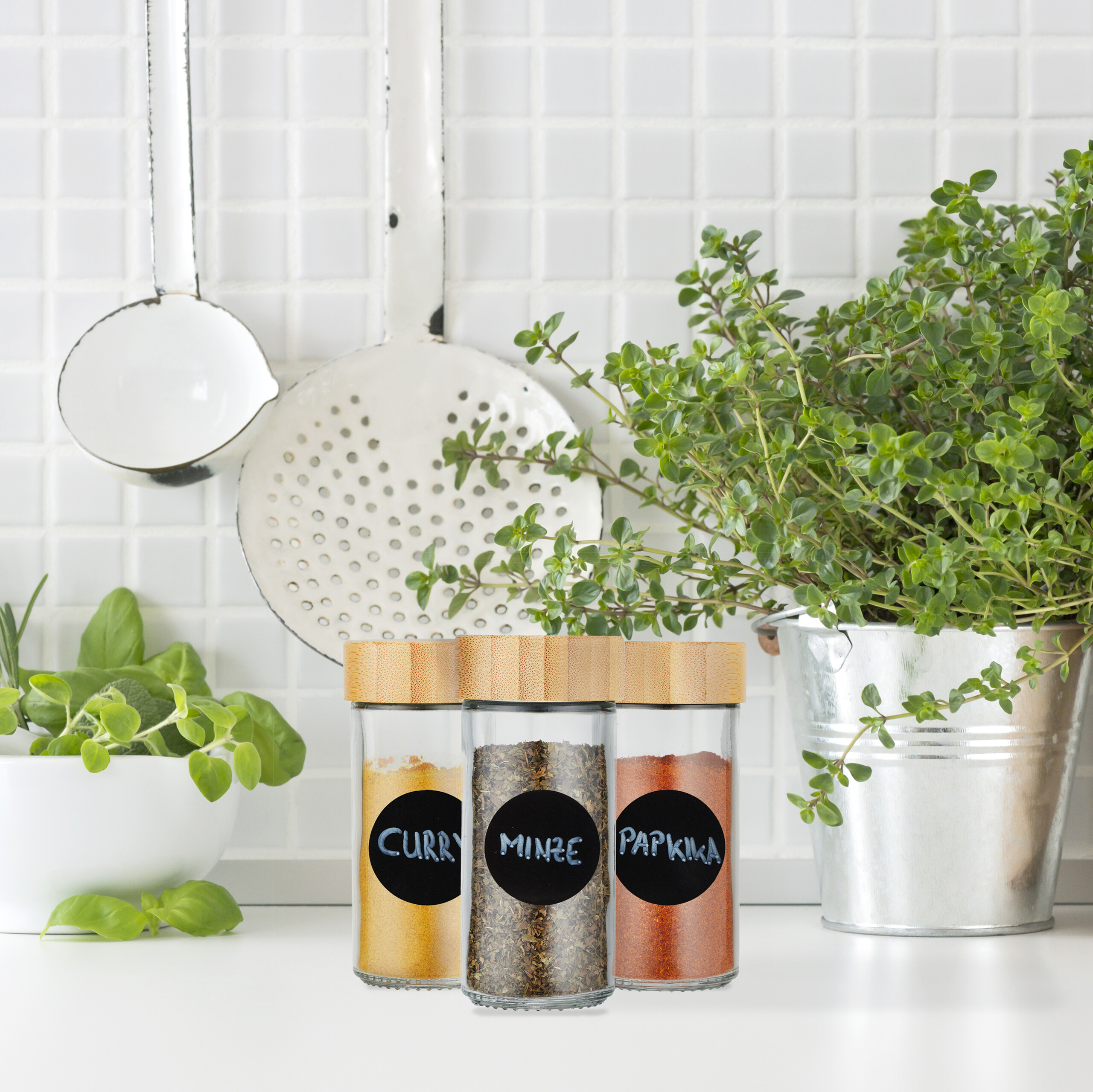 - Personalizacija: Ant apvalių indelių galite klijuoti užrašomas etiketes, kad reikiamų prieskonių būtų galima rasti kuo greičiau.