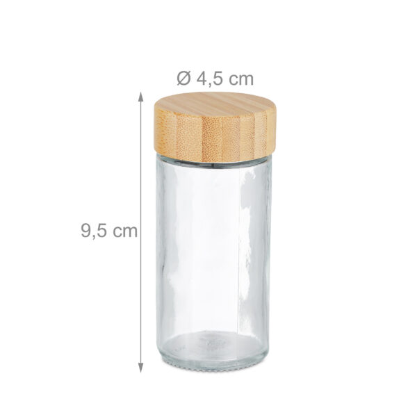- Medžiaga: Skaidrus stiklas – leidžia lengvai matyti prieskonių kiekį ir rūšį.