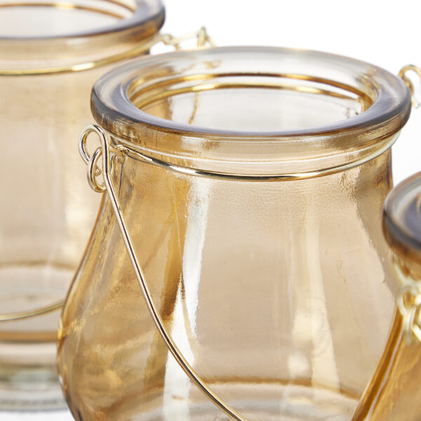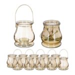 Pristatome elegantišką ir funkcionalų stiklinį aukso spalvos arbatinių žvakių laikiklių rinkinį, kuris ne tik papuoš jūsų namus, bet ir suteiks jiems ypatingo jaukumo. Šis rinkinys puikiai tinka tiek vidaus, tiek lauko erdvėms, suteikdamas šilumos ir šviesos bet kokiai progai.