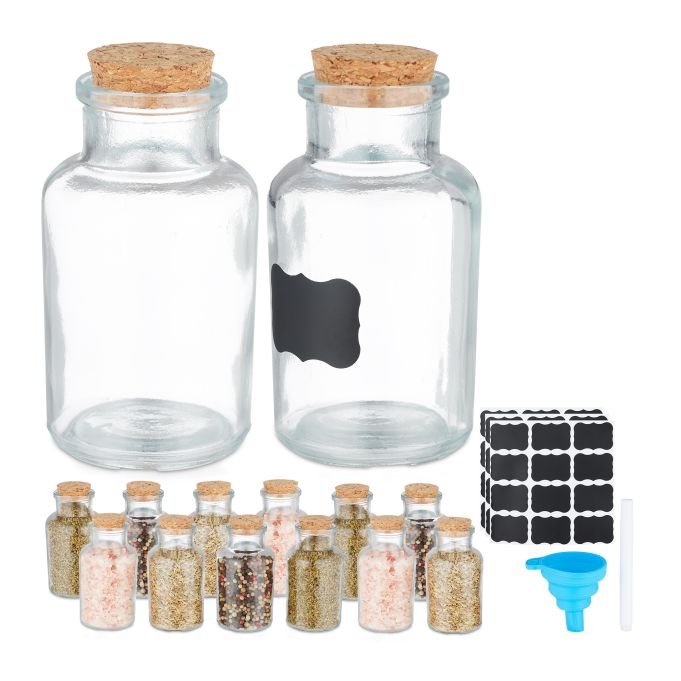 Rinkinys iš 14 Skaidrių Prieskonių Indelių – Elegancija ir Tvarka Jūsų Virtuvėje
