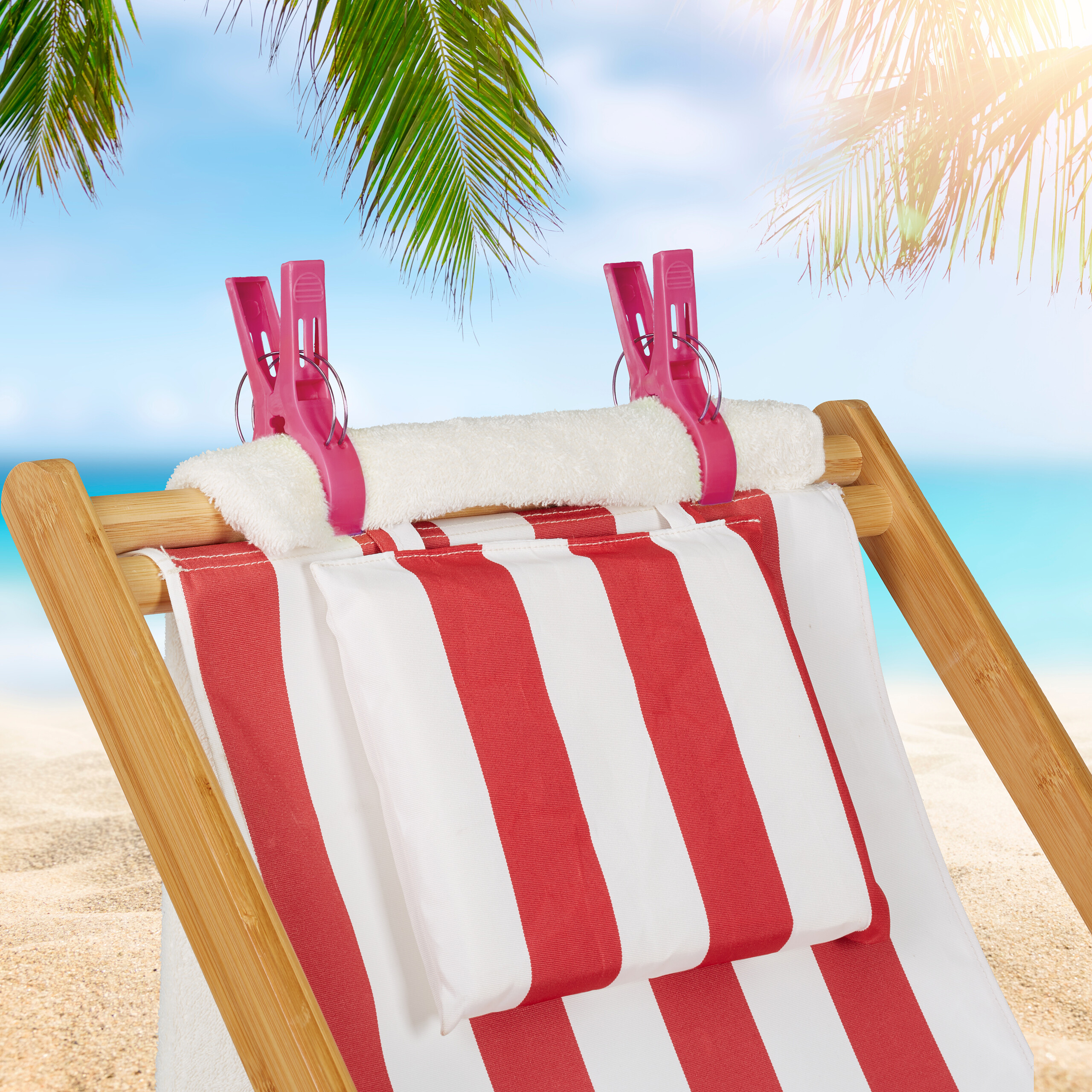 - Patikimumas: Dėl metalinio žiedo ir neslystančio dizaino segtukai išlaiko rankšluosčius net pučiant stipriam vėjui.
