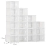 Modulinė HOMCOM lentynų sistema yra vienu žingsniu priekyje kiekvienos batų lentynos! Susideda iš 18 kubo modulių, jį galima surinkti pagal pageidavimą ir optimaliai pritaikyti jūsų interjerui. Tvirta plastikinė lentyna yra itin patvari, joje taip pat yra praktiškos ventiliacijos angos. Dėl skaidrios medžiagos visada galėsite sekti savo kolekciją. Žinoma, spintelę taip pat galite naudoti žaislams, knygoms, skalbiniams ir dar daugiau. m. naudokite.