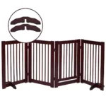 Rinkinys iš 2 atraminių kojelių šunų barjerui, pagamintas iš tvirtos pušies medienos, užtikrina papildomą stabilumą ir apsaugą jūsų augintinio tvorai. Šios rudos spalvos atraminės kojelės tinka maždaug 2 cm storio barjerams ir neleidžia jiems apvirsti ar slysti. Dėl nesvylančių trinkelių jos apsaugo grindis nuo įbrėžimų ir lengvai montuojamos.