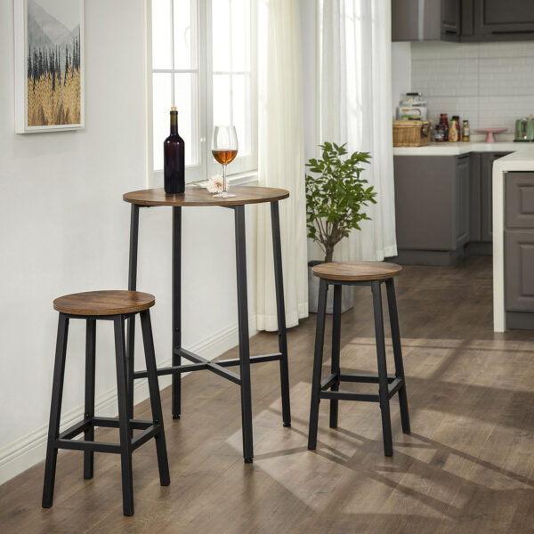 Šios baro kėdės yra ne tik stilingos, bet ir patvarios, pagamintos iš aukštos kokybės medžiagų, kurios užtikrina ilgaamžiškumą ir stabilumą. Plieninė konstrukcija suteikia tvirtumo, o medžio drožlių plokštė prideda natūralumo ir šilumos jūsų interjerui.