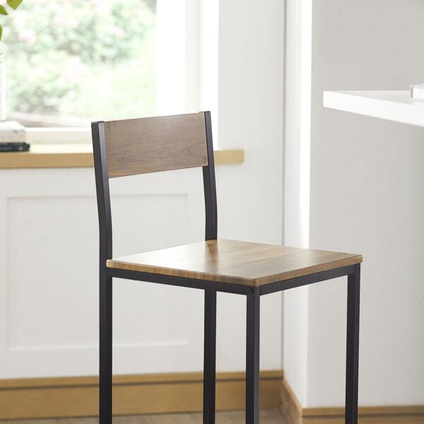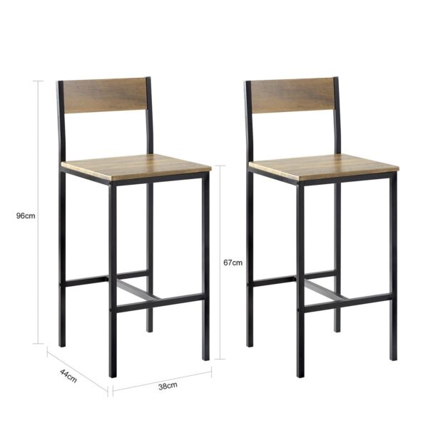 Rinkinys iš 2 baro kėdžių 38x96x44 cm, juodos/rudos spalvos, yra puikus pasirinkimas jūsų namų ar komercinės erdvės interjerui. Šios kėdės ne tik suteikia elegancijos, bet ir užtikrina komfortą ilgesniam sėdėjimui prie stalo, nes atlošo kampas suteikia puikią atramą nugarai.