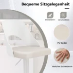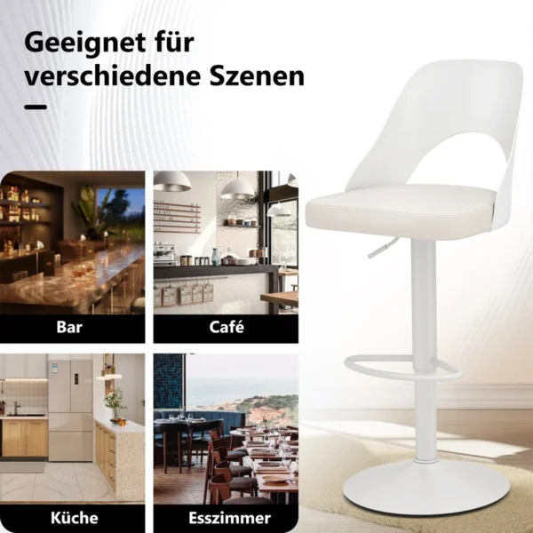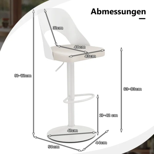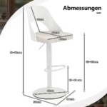 Rinkinys iš 2 baro kėdžių baltos spalvos, skirtas naudoti tiek namuose, tiek komercinėse erdvėse. Baro kėdės pasižymi reguliuojamu aukščiu, 360° sukimu ir patogia dirbtinės odos sėdyne. Tinkamos virtuvėms, barams ir kavinėms, kur reikalingas funkcionalus ir patvarus sėdėjimo sprendimas.