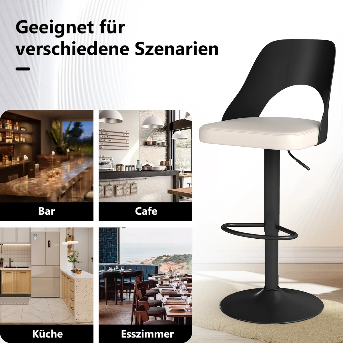 - Baro kėdžių rinkinys sujungia funkcionalumą ir patogumą įvairioms patalpoms.