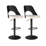 Rinkinys iš 2 baro kėdžių juodos ir smėlio spalvos yra praktiškas sprendimas barui, virtuvei ar valgomojo zonai. Baro kėdės pasižymi reguliuojamu aukščiu, 360° pasukimo funkcija bei patogia dirbtinės odos sėdyne, atsparia vandeniui ir dilimui.