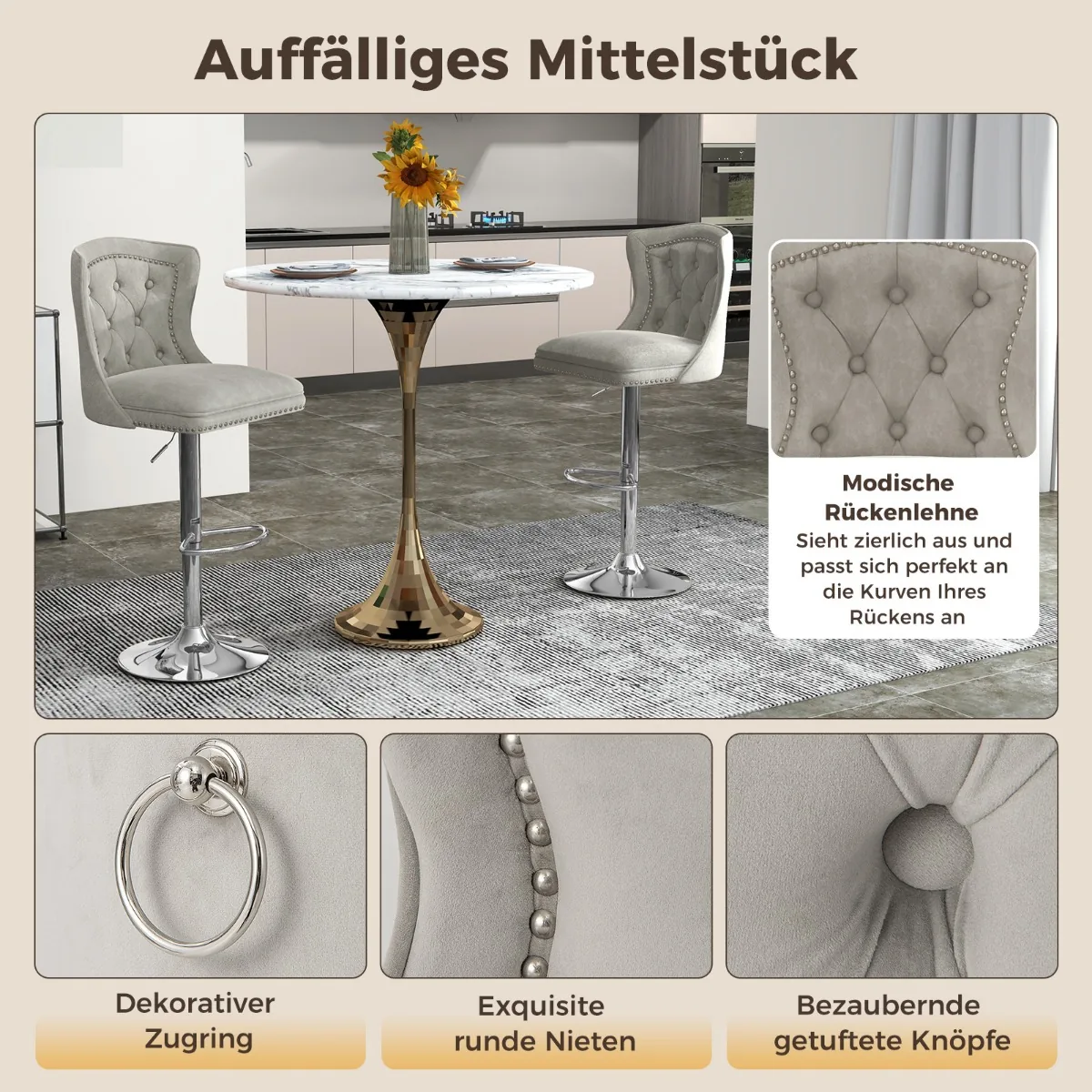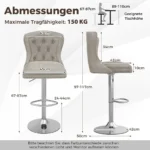 Rinkinys iš 2 baro kėdžių pilkos ir sidabrinės spalvos puikiai tinka virtuvėms, valgomojo zonai ar barams. Baro kėdės yra aptrauktos olandišku aksomu ir turi reguliuojamą aukštį bei 360° pasukamą sėdynę, kas užtikrina patogumą ir funkcionalumą įvairiose erdvėse.