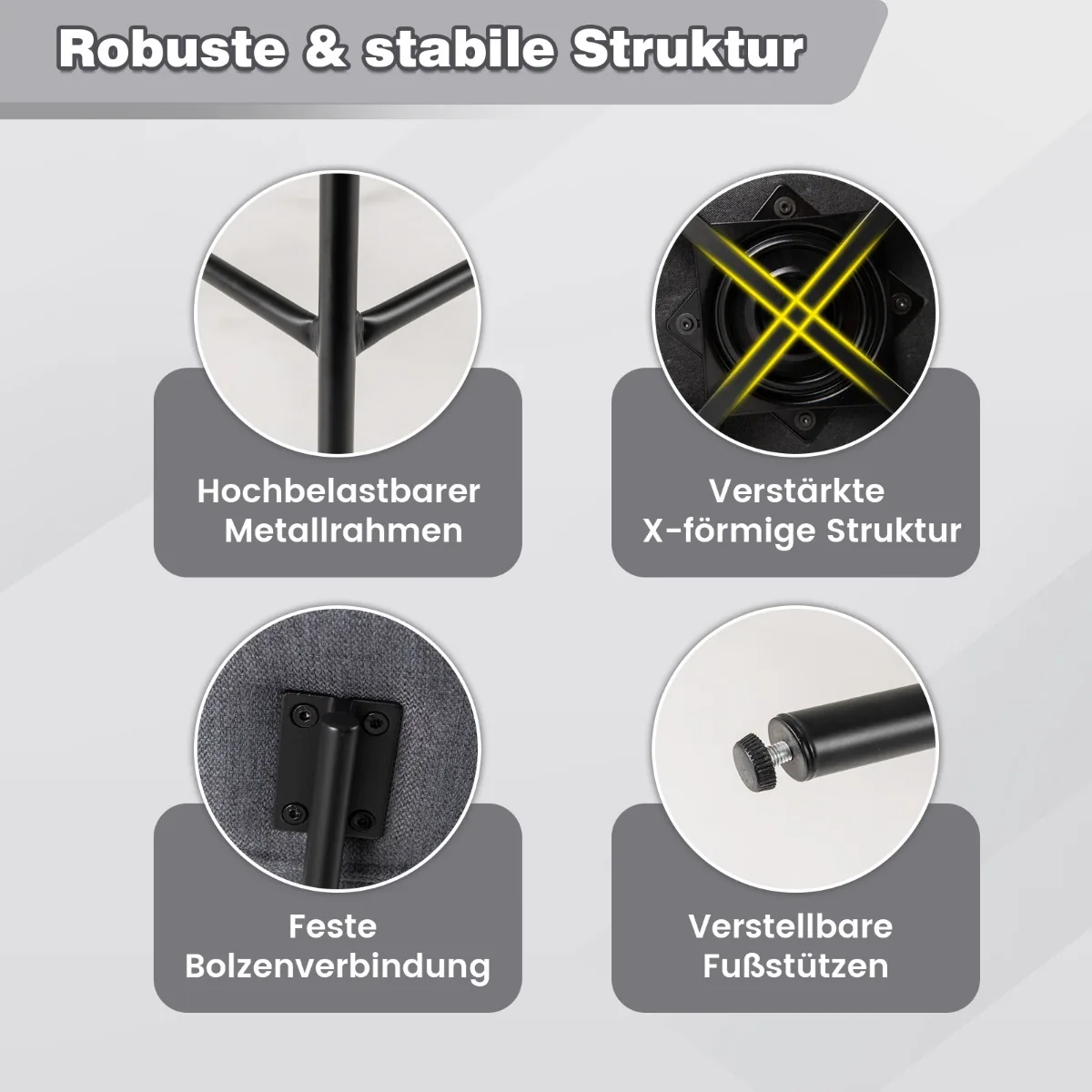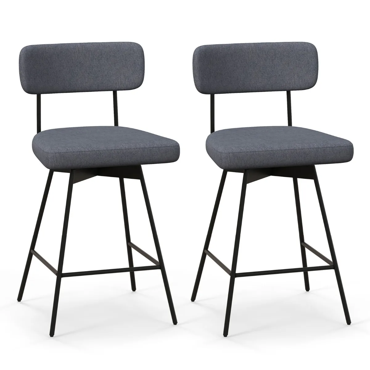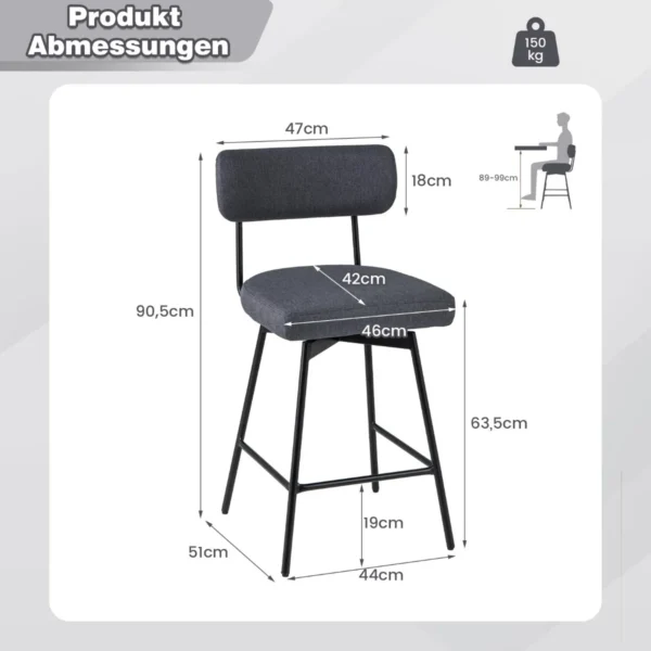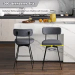 Rinkinys iš 2 baro kėdžių, pagamintų iš tamsiai pilkos ir juodos spalvų derinio, yra praktiškas sprendimas valgomajam, virtuvei ar baro zonai. Kėdės pasižymi 360° pasukama sėdyne ir patvaria metaline konstrukcija, užtikrinančia ilgaamžiškumą bei patogumą sėdint.