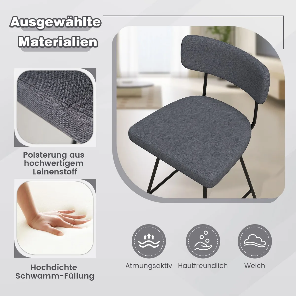 - Sėdynė ir atlošas paminkštinti porolonu bei aptraukti lininiu audiniu, suteikiančiu komfortą.