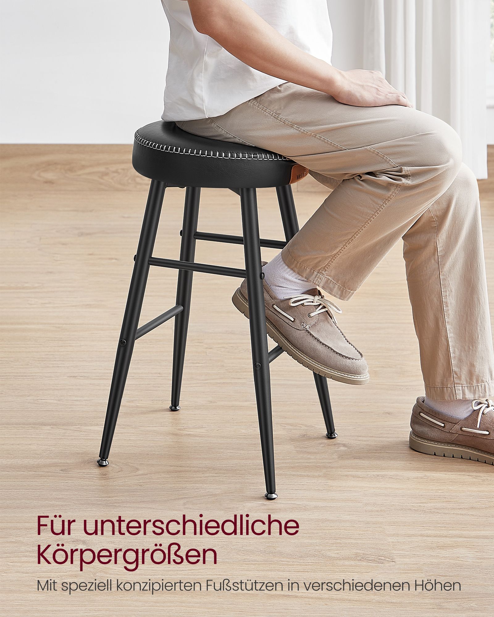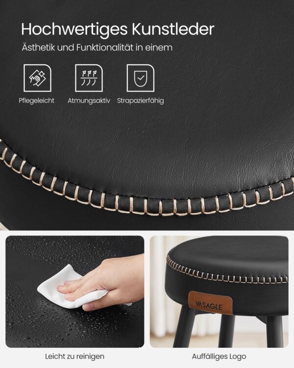 - Matmenys: Vienos taburetės dydis – 49,5 x 49,5 x 63 cm (D x P x A).