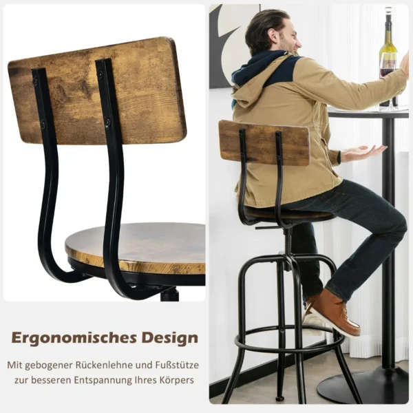 Rinkinys iš 2 baro kėdžių suteikia galimybę erdvei įgyti pramoninio stiliaus akcentą. Baro kėdės turi reguliuojamą sėdynės aukštį ir ergonomišką dizainą, todėl puikiai pritaikomos prie įvairių stalų ir baro stalų. Kėdžių konstrukcija užtikrina stabilumą ir patvarumą kasdieniam naudojimui.