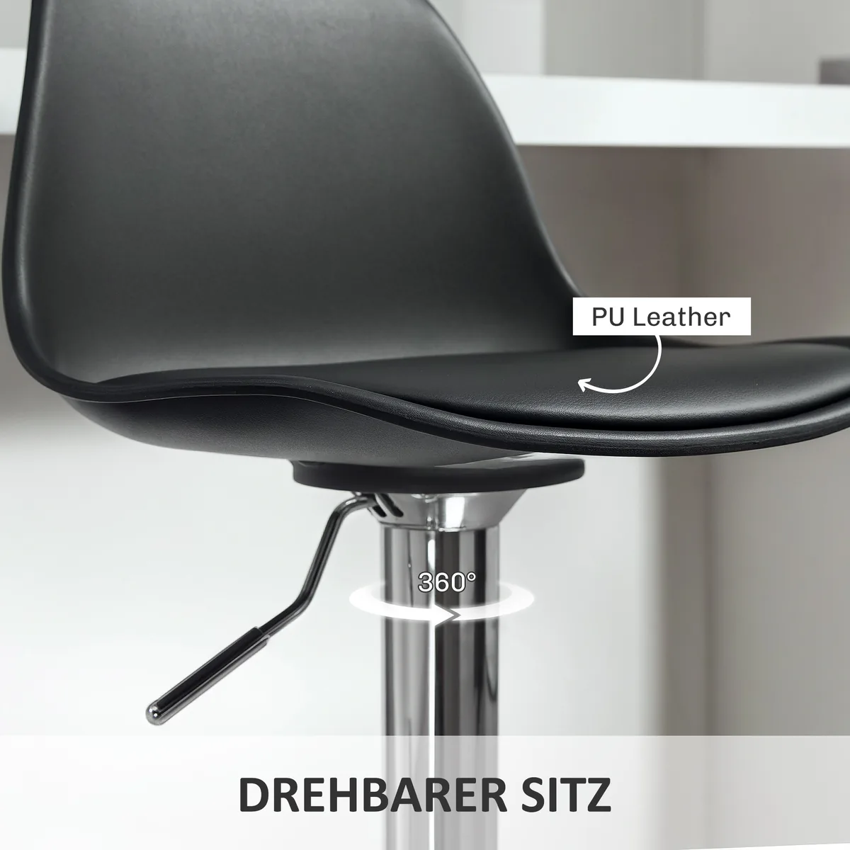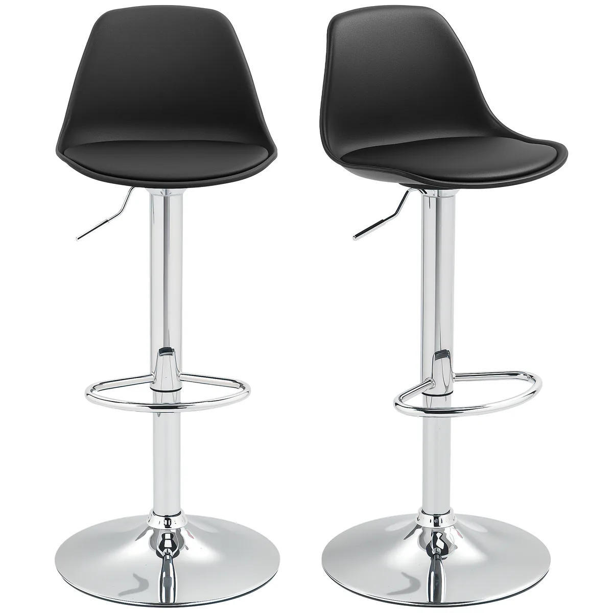 Su išskirtiniu reguliuojamo aukščio baro kėdžių rinkiniu iš HOMCOM į savo namus galėsite atsinešti modernių baldų. Nesvarbu, ar tai būtų gausūs pusryčiai, ar atsipalaidavę vakaro gėrimai, šios stilingos kėdės visada garantuoja nepakartojamą sėdėjimo patirtį. Reguliuojamo aukščio, patogios formos baro kėdes taip pat lengva prižiūrėti. Kojų atrama ant tvirto plieninio rėmo užtikrina visišką komfortą.