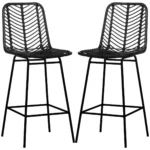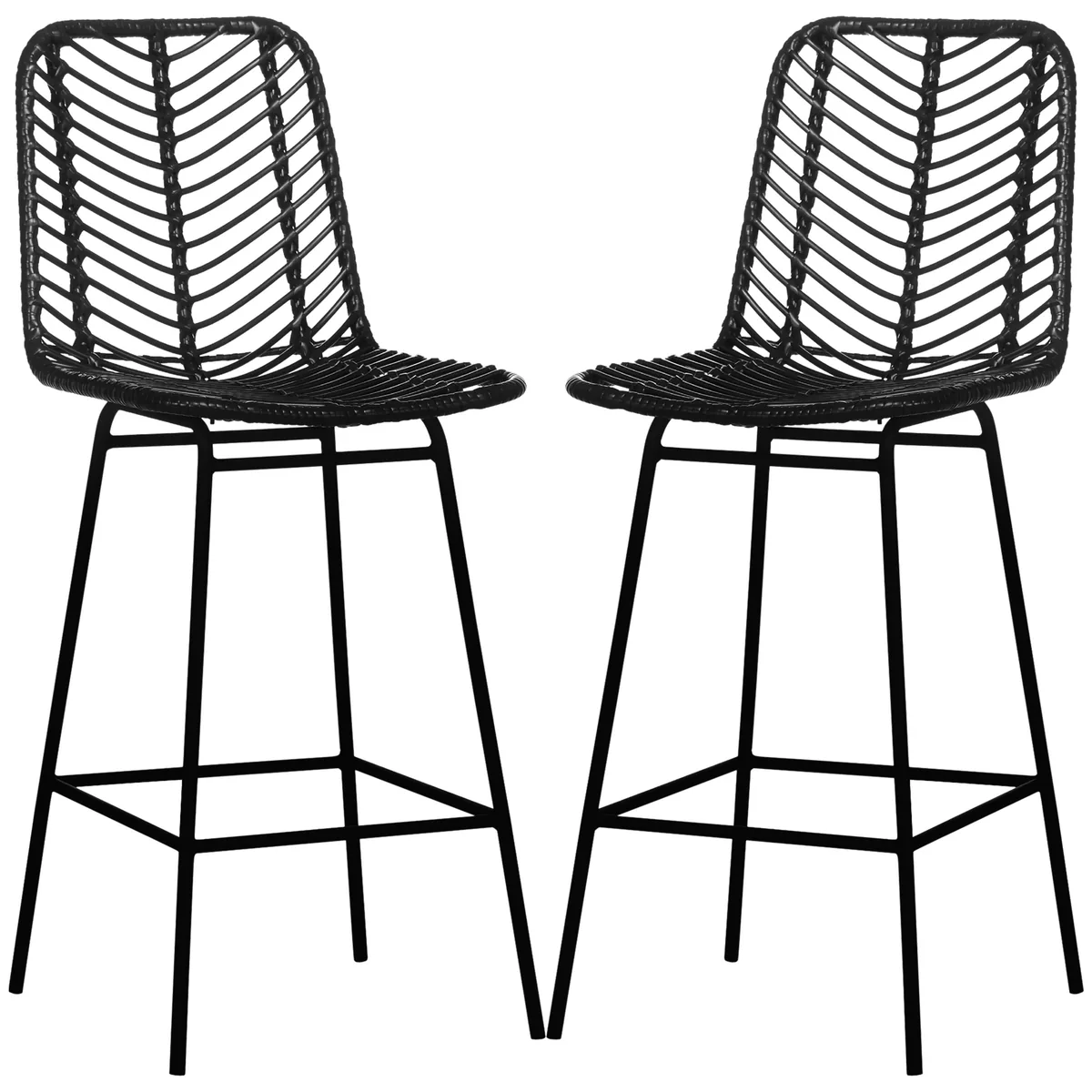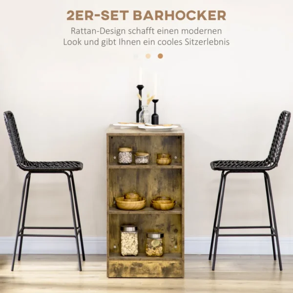 Įkelkite boho stilių į savo namus! Nesvarbu, ar sekmadienio priešpiečiai, ar ramus vakaras su mėgstamais gėrimais – šis 2 baro kėdžių rinkinys atitinka visus jūsų pageidavimus. Sėdynė ir atlošas iš rotango suteikia virtuvės kėdėms madingą boho išvaizdą, o plieninės kojelės užtikrina stabilumą. Papildomo komforto suteikia kojų atrama. Užsisakykite stilingas ir patogias baro kėdes iš HOMCOM jau šiandien!