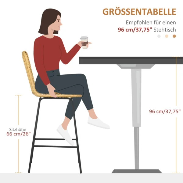 Patirkite stilių ir patogumą su HOMCOM 2 madingo boho dizaino baro kėdžių rinkiniu. Šios kėdės, idealiai tinkančios moderniam, jaunam profesionalui, derina rotango išvaizdą su tvirtomis plieninėmis kojomis, užtikrinančiomis patvarumą ir stabilumą. Ergonomiška kojų atrama padidina sėdėjimo komfortą, todėl šios kėdės puikiai papildys jūsų svetainę ar barą. Įsigykite šį dizaino ir funkcionalumo derinį dabar.