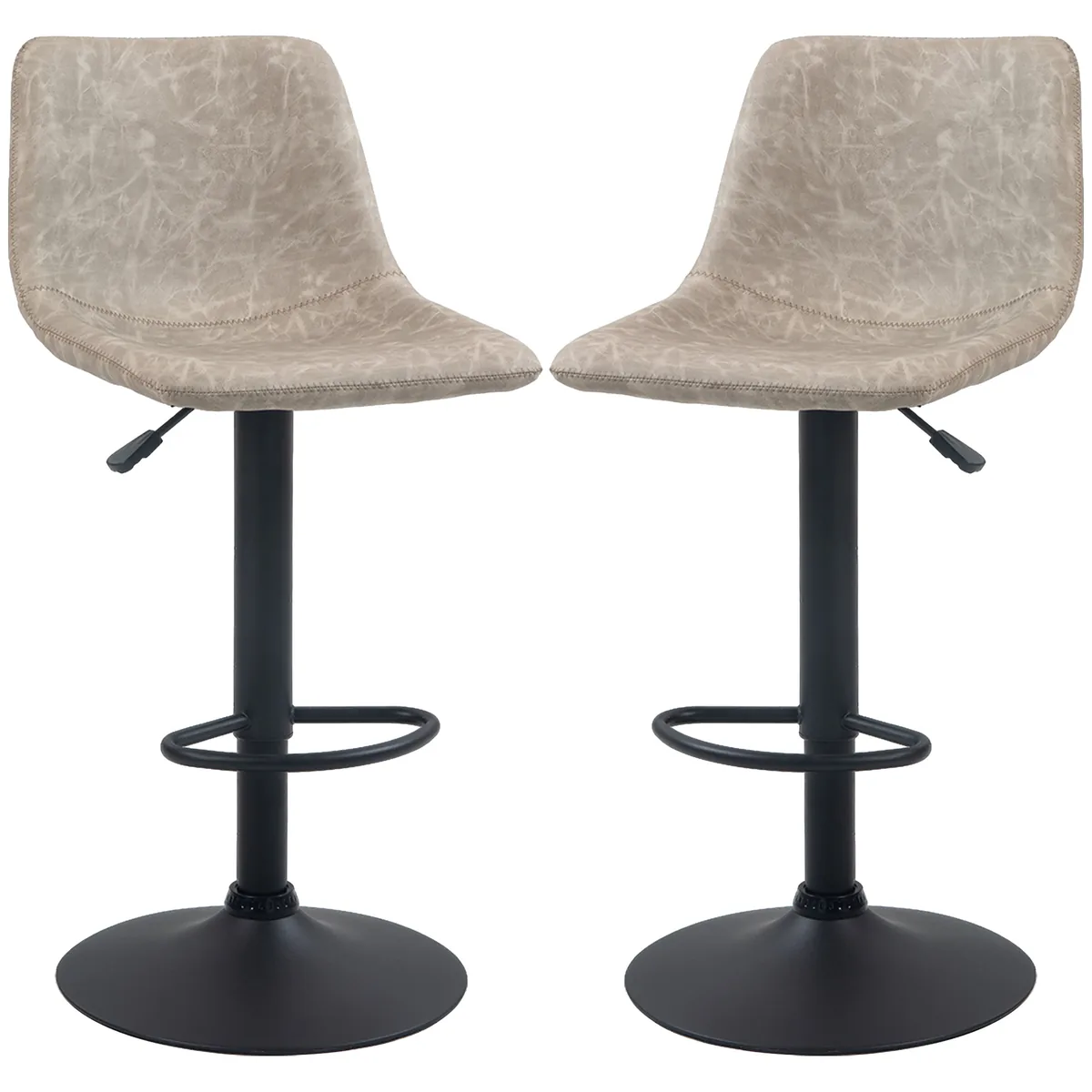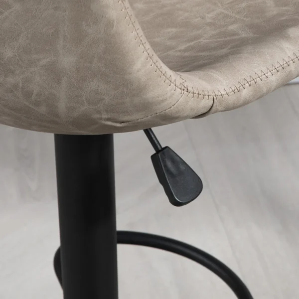 Suteikite savo namų barui daugiau skonio su šiuo stilingu retro baro kėdžių duetu. Neutralios baro kėdės spalvos puikiai dera beveik bet kokiame interjere ir iš karto sukuria harmoningą atmosferą. Besisukančios virtuvės kėdės sėdynės be porankių suteikia jums laisvę patogiai judėti, o stačias atlošas suteikia optimalią atramą poilsiui prie stalo. Mėgaukitės linksmais vakarais su draugais ir šeima.