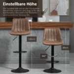 Suteikite į savo valgomojo zoną rafinuoto retro stiliaus su šiomis HOMCOM baro kėdėmis. 2vnt komplektas puikiai dera prie skirtingų namų baldų. Dizainas be porankių suteikia daug judėjimo laisvės ir yra patogus. Patogus atlošas suteikia jaukią nugaros atramą.