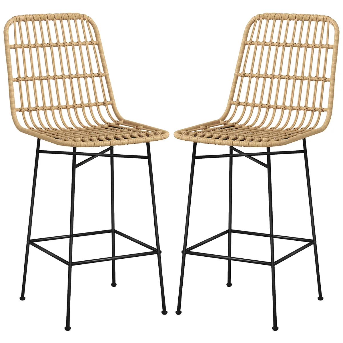 Pagražinkite savo virtuvę ar barą su 2 baro kėdžių rinkiniu iš HOMCOM, kuriame boho ir kaimo namų žavesys ir nuostabaus dizaino iš PE rotango vytelių. Šios kėdės yra ne tik šventė akims, bet ir žada kvėpuojantį komfortą dėl erdvios sėdynės ir atlošo, kurį papildo atraminė pėdų atrama. Dėl tvirto plieninio rėmo ir neslidžios kojų atramos jūsų grindys išliks nesugadintos.