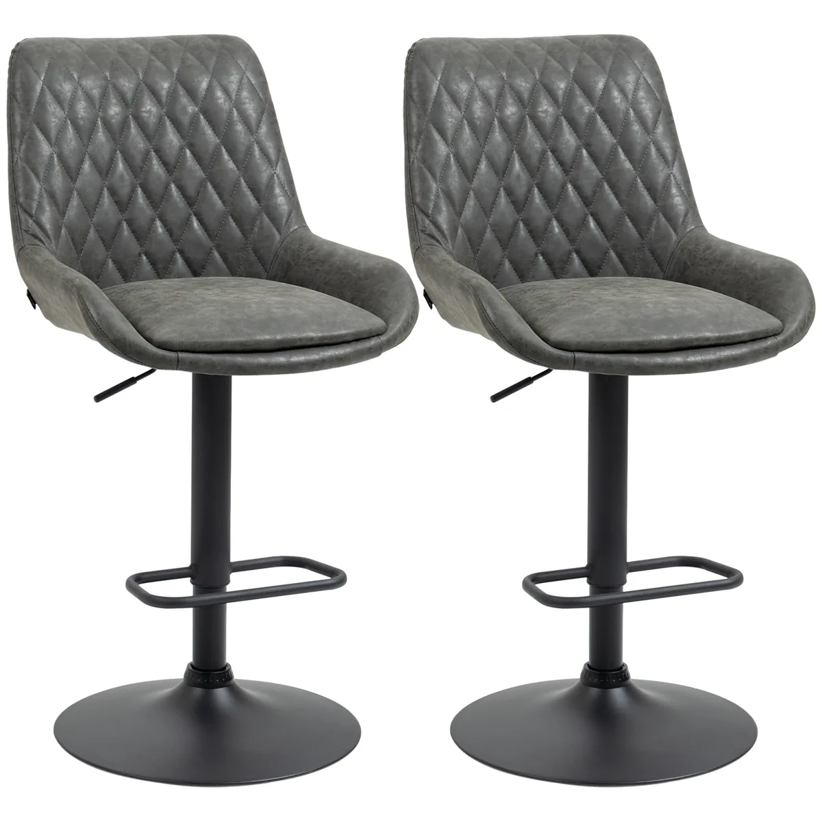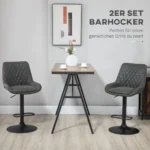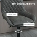 Su šiomis HOMCOM baro kėdėmis galite suteikti savo virtuvei ar valgomajam stilingą išvaizdą. Dirbtinės odos apmušalai užtikrina gražią išvaizdą. Paminkštinta sėdynė ir aukštas atlošas užtikrina patogią sėdėjimą ir atramą. Metalinis baro kėdės rėmas užtikrina stabilumą ir saugų stovą. Reguliuojamas aukštis nuo 63 iki 83 cm: galite reguliuoti sau optimalų aukštį. Kėdė turi apatinę atramą kojoms.
