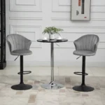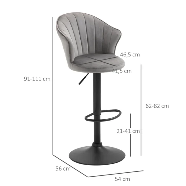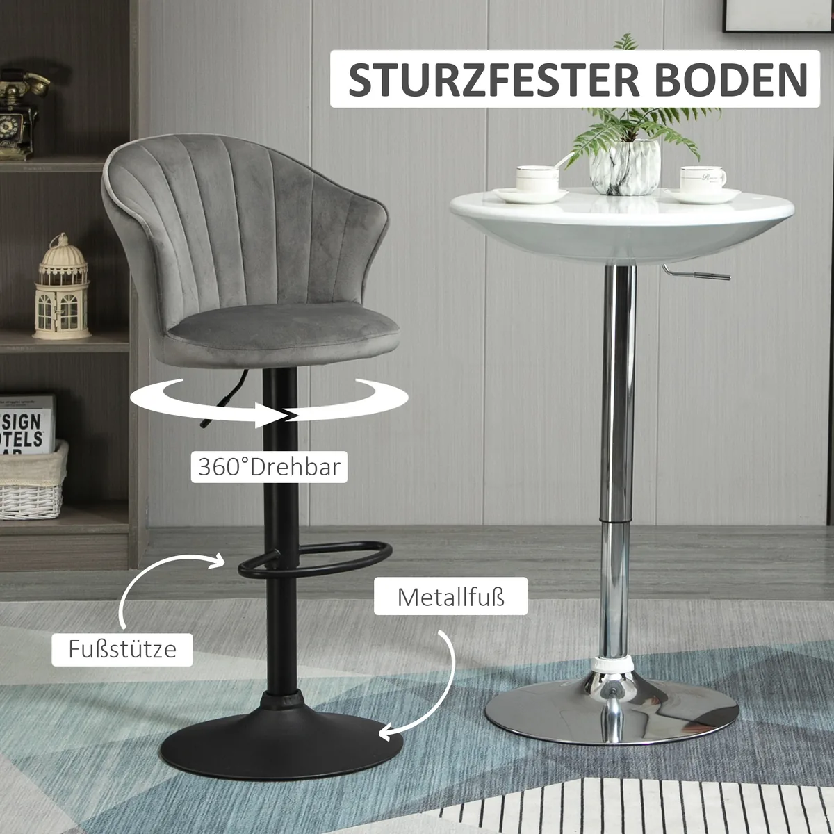 Naudokite šias dvi HOMCOM kėdes, kad savo virtuvės stalviršį ar namų barą puoštumėte elegantiškai. Taburetė su flaneliniu paviršiumi suteikia daug elegancijos. Išlenktas atlošas ir berankis dizainas palaiko kūną ir suteikia judėjimo laisvę. Šios taburetės turi dideles apvalias metalines kojeles, kurios naudojant išlaiko taburetę vertikaliai ir stabiliai.