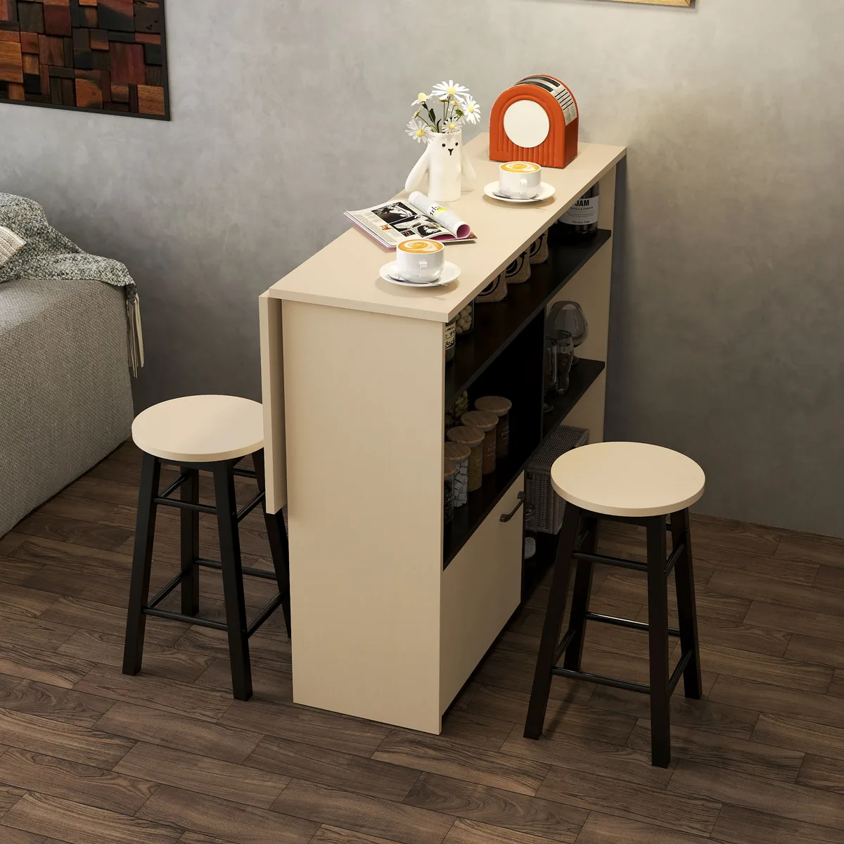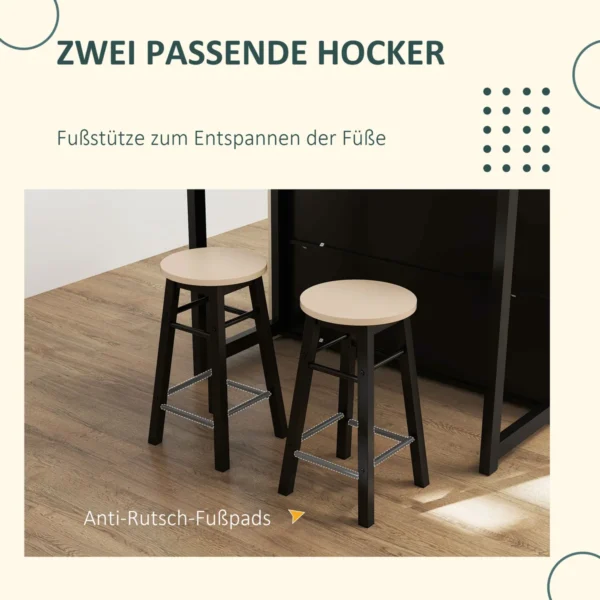 Su HOMCOM baro kilimėliu galite sukurti jaukią vietą linksmiems gėrimo vakarams arba skaniai pavalgyti dviese. Dėl ištraukiamo viršaus baro stalas gali būti naudojamas kaip papildoma valgomojo zona arba sulankstytas kaip praktiška indauja. Dvi baro kėdės gali būti laikomos po stalu, kai jos nenaudojamos. Naudodami šį rinkinį gausite visą savo baro zoną, kuri skoningai ir praktiškai praplės jūsų namus.