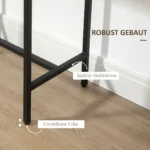 Šis baro stalas su baro kėdžių rinkiniu iš HOMCOM stebina savo madinga pramonine išvaizda ir sumaniu, erdvę taupančiu dizainu. Juodo metalo ir medinės išvaizdos viršutinės dalies derinys suteikia šiems baldams madingą pramoninę išvaizdą. Bistro stalas su 2 kėdėmis suteikia patogią sėdynę 2 žmonėms. Sumanaus dizaino dėka taburetės gali būti stumiamos po aukštu stalu, kad sutaupytumėte vietos, kai jos nenaudojamos.