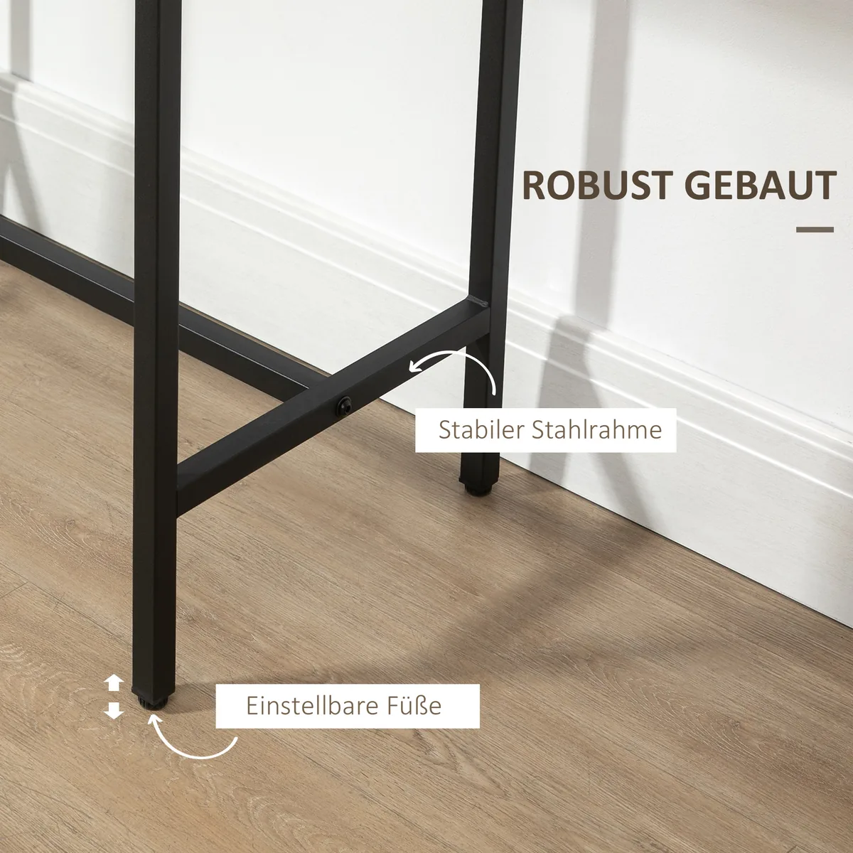 - ✔ Tvirta konstrukcija, pagaminta iš medžio medžiagos ir plieno, yra patvari, tvirta ir lengvai prižiūrima:
