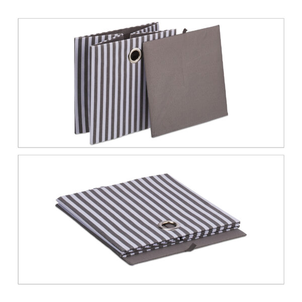 Šios kvadratinės medžiaginės dėžutės yra puikus sprendimas indams ir kitiems daiktams laikyti, padedant išvengti netvarkos. Jų elegantiškas dizainas traukia akį ir suteikia jūsų namams modernų akcentą. Be to, sulankstomos dėžutės yra lengvai laikomos, kai jų nenaudojate, todėl jos yra puikus pasirinkimas ir vaikų kambariui.