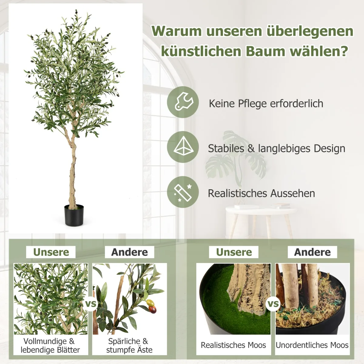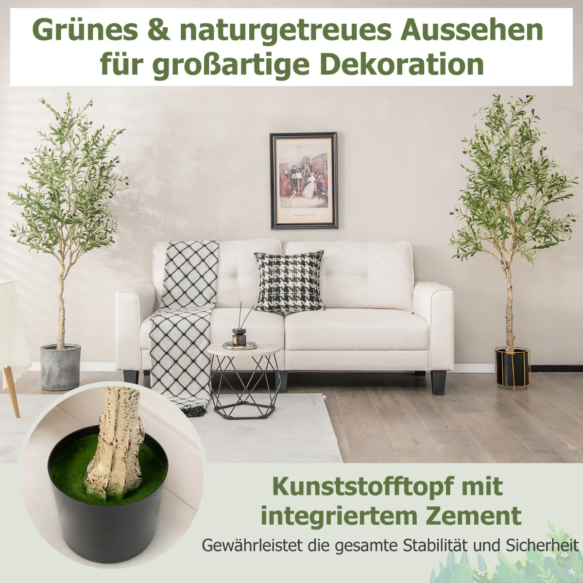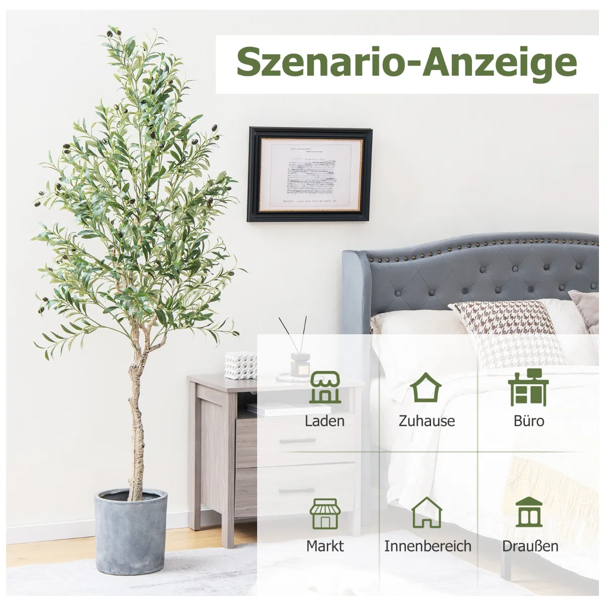 Rinkinys iš 2 dirbtinių alyvmedžių, kurių aukštis siekia 182 cm, puikiai tinka namų, biuro ar lauko erdvių dekoravimui. Šie dirbtiniai augalai imituoja tikrų alyvmedžių išvaizdą, suteikdami natūralų žalią atspalvį be papildomos priežiūros.