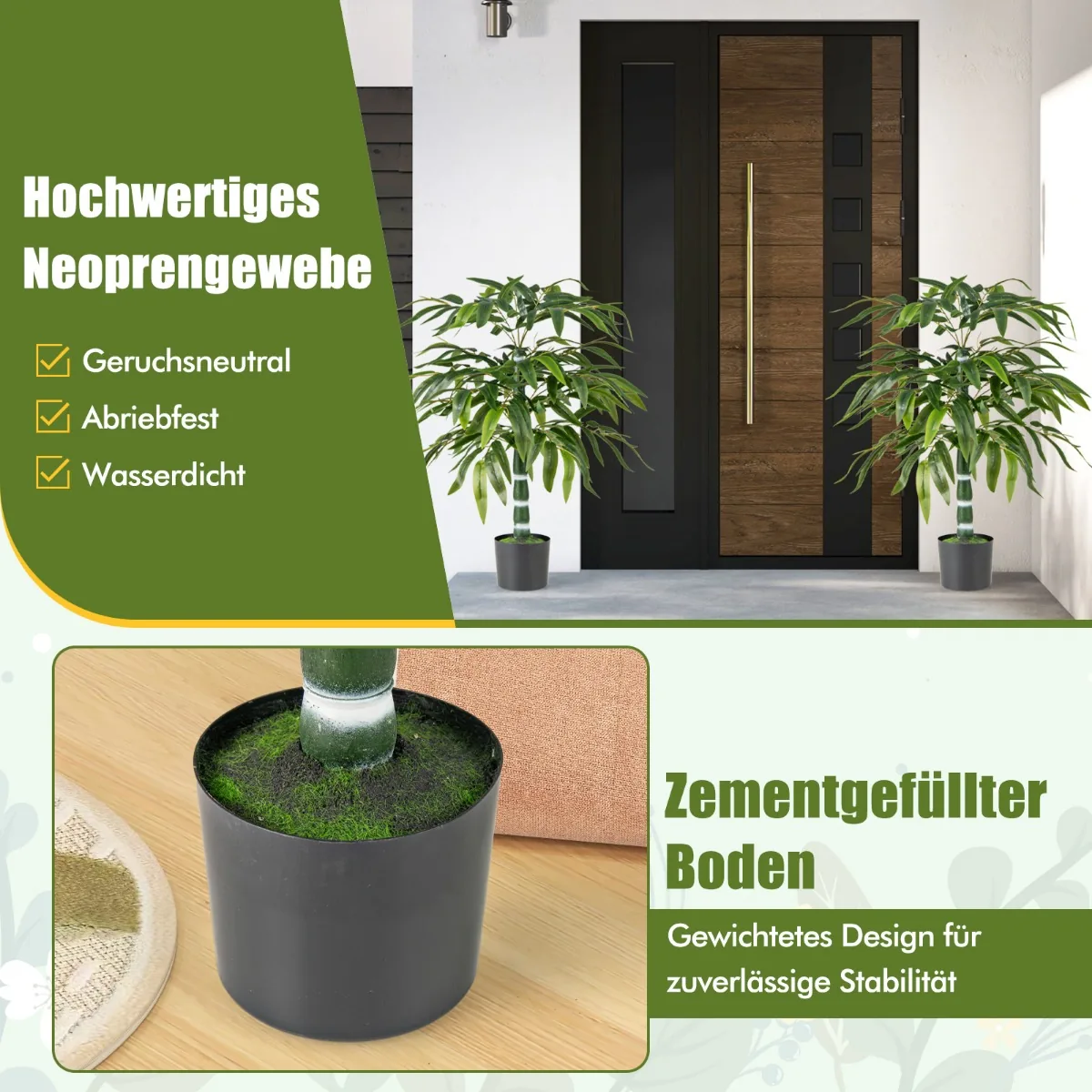 - Minimalios priežiūros reikalaujantis dekoratyvinis elementas, tinkantis įvairioms patalpoms.