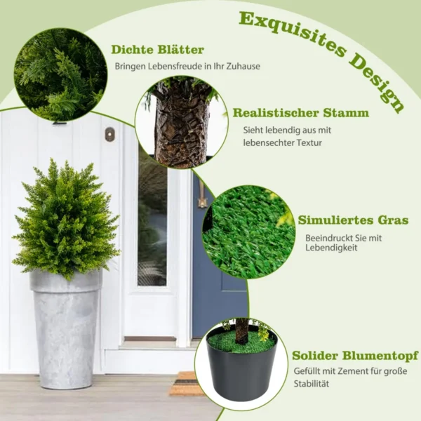 • Rinkinį sudaro 2 dirbtinės eglės su amžinai žaliuojančiais lapais ir dekoratyvine žole.