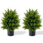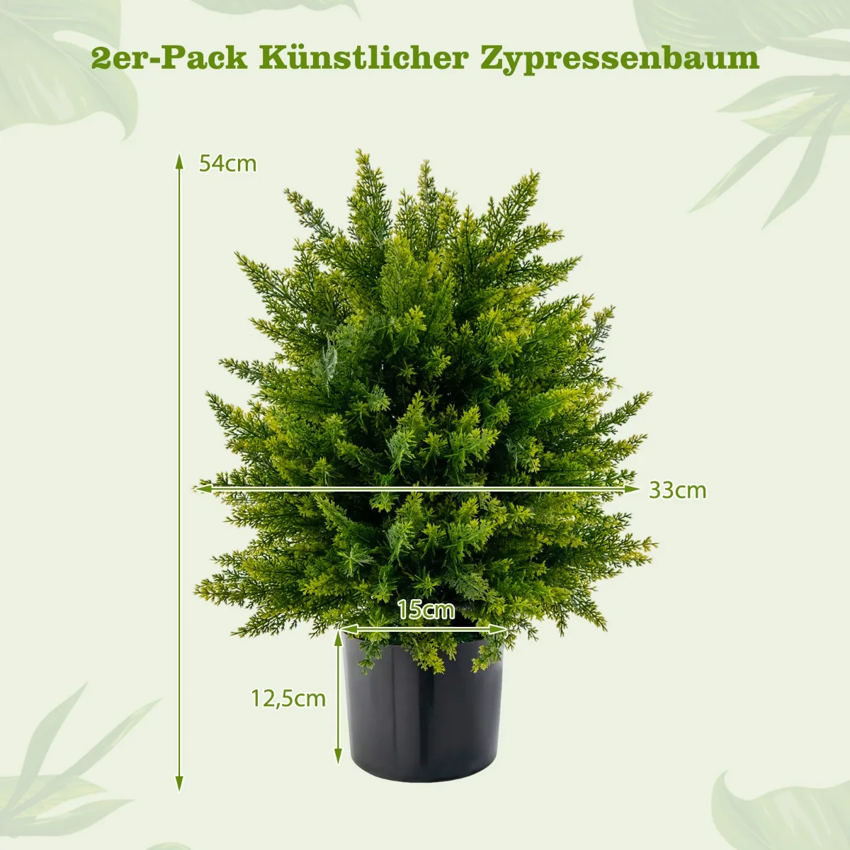 Rinkinys iš 2 dirbtinių eglių 33×54 cm yra puikus sprendimas namų, biuro ar lauko erdvių dekoravimui. Šie dirbtiniai medeliai pasižymi natūraliai atrodančiais žaliais lapais ir tvirtu pagrindu, kuris užtikrina stabilumą. Dirbtinės eglės yra pagamintos iš patvarių PE ir PVC medžiagų, atsparių UV spinduliams ir kitoms oro sąlygoms.