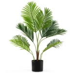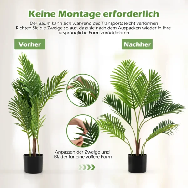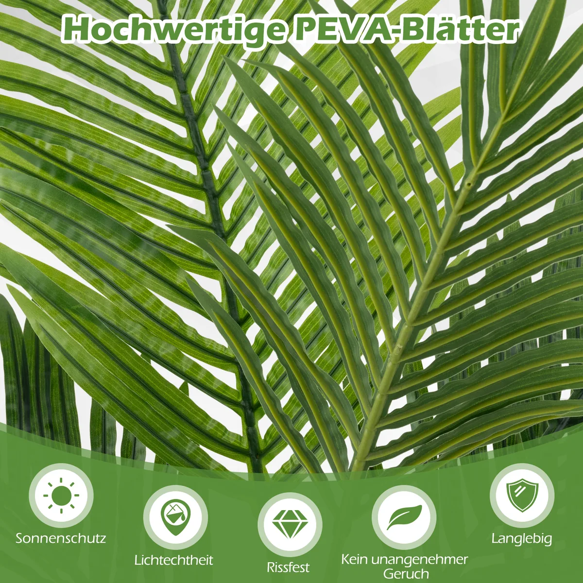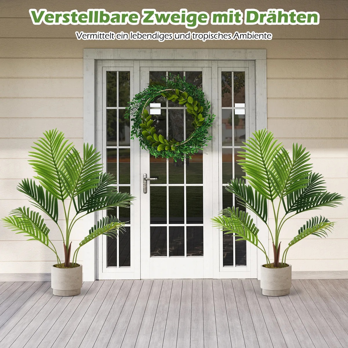- Dviejų dirbtinių Areca palmių rinkinys su ryškiais, tikroviškos tekstūros lapais.