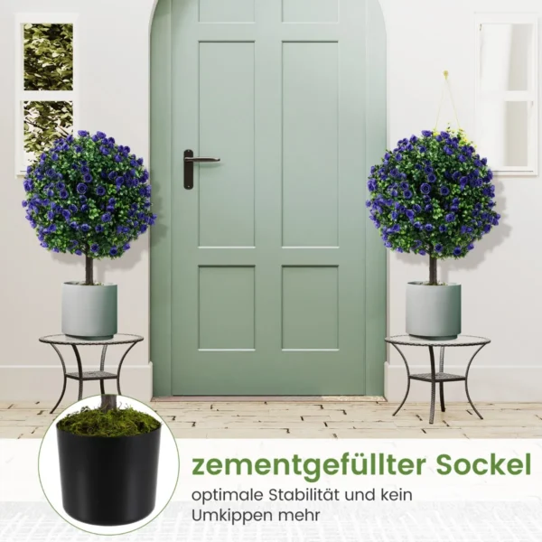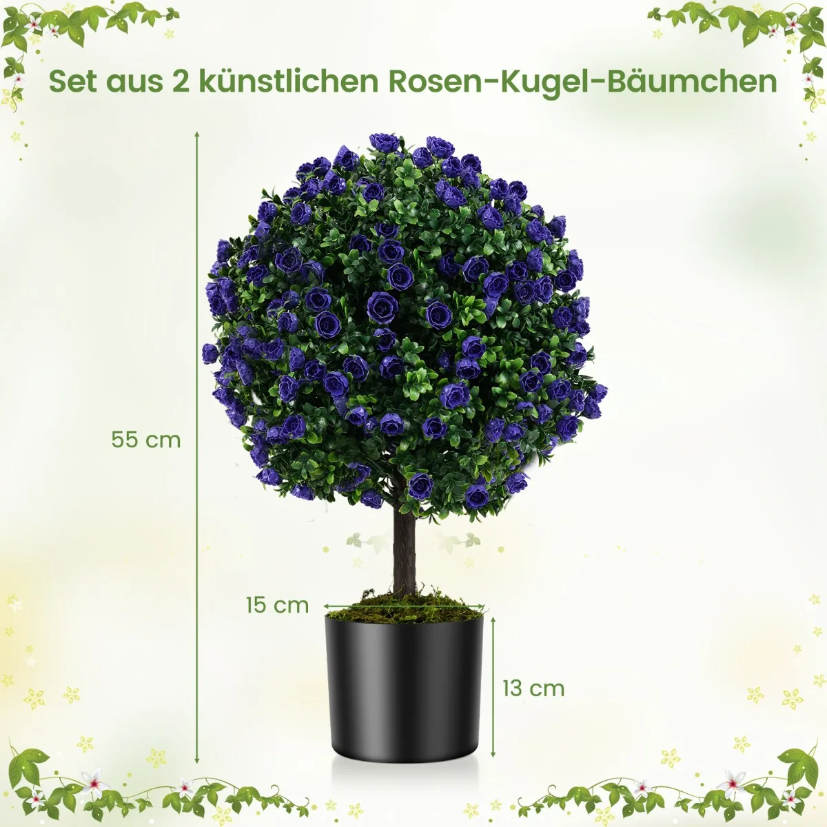 - Du 55 cm aukščio rutuliniai dirbtiniai rožių medžiai su purpurinėmis rožėmis ir tikrovišku kamienu.