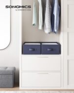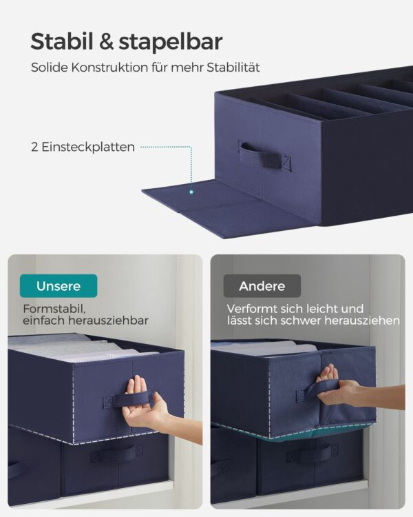Ieškote praktiško ir stilingo sprendimo savo drabužių laikymui? Šis rinkinys iš 2 drabužių laikymo organizatorių yra puikus pasirinkimas, kuris padės palaikyti tvarką jūsų spintoje ar lentynose. Elegantiška tamsiai mėlyna spalva suteiks jūsų interjerui modernumo ir subtilumo.