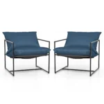 Rinkinys iš 2 fotelių 71x71x61 cm matmenų, mėlynos ir juodos spalvų, skirtas tiek vidaus, tiek lauko erdvėms. Ergonomiškas dizainas užtikrina patogų poilsį, o ilgaamžės medžiagos garantuoja patvarumą ateityje.