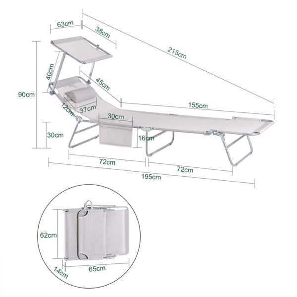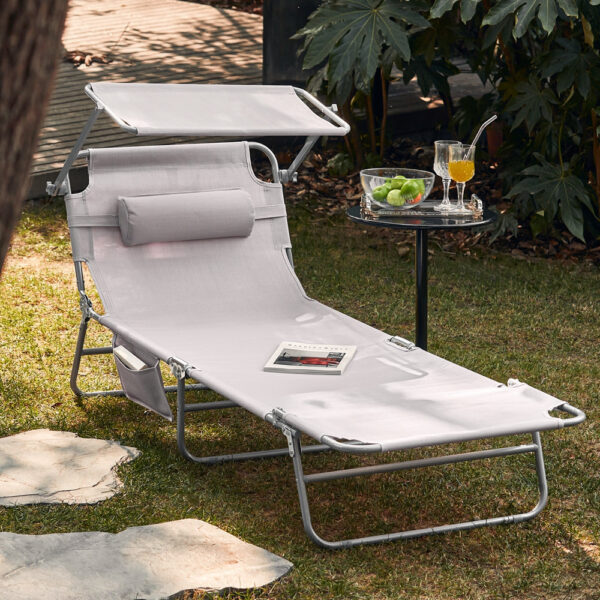 Jei mėgstate saulę, bet nenorite jos tiesioginių spindulių veide, šie gultai turi integruotą saulės skydelį. Tai leidžia jums spręsti kryžiažodžius ar žaisti Sudoku be saulės akinimo. Skydelį galima lengvai reguliuoti, tiesiog paspaudus jį.